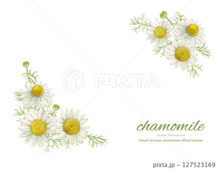 水彩で描いたカモミールの花とナチュラルなイラスト素材