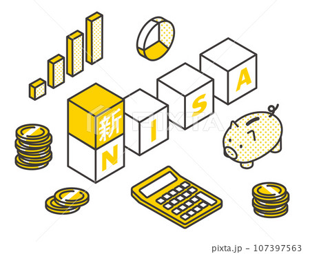 新NISAのロゴのアイソメアイコンのベクターイラスト素材/マネー/ファンド