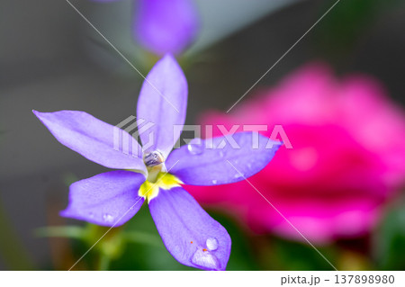 雨に濡れた紫のイソトマ