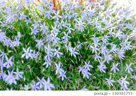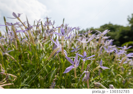 淡い紫色の小花が咲き広がる風景