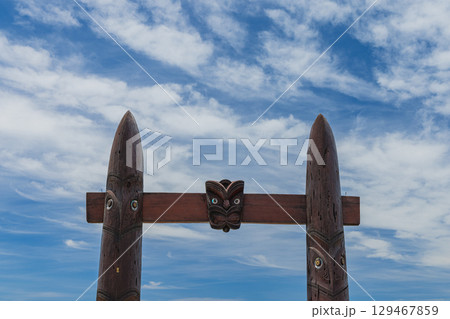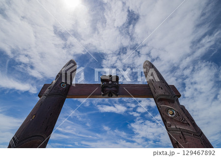 ニュージーランド ホークスベイ、ネイピアのワイタンギ・リージョナル・パークにあるマオリの門