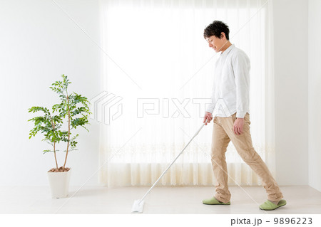 床掃除 (掃除 清潔 ボディパーツ 顔なし 主夫 日常 ライフスタイル 家事 男性 床 リビング)