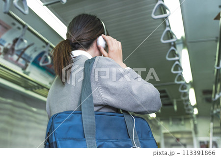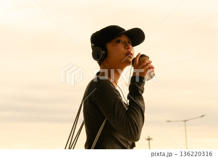 ヘッドホンで音楽を楽しむ女性 ■撮影協力:関西国際空港(KIX)