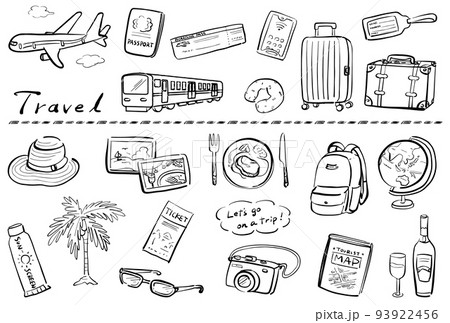 フランス旅行にまつわるベクターイラストセット、レトロな雰囲気