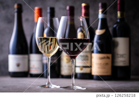 赤白ワインボトル 切り抜き画像