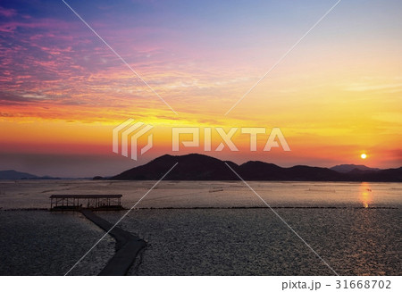 順天湾 日没 海