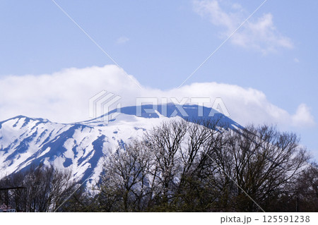 岩手山の頂上にくっきりと出たイワワシの雪型は北国の春の農作業の開始の合図