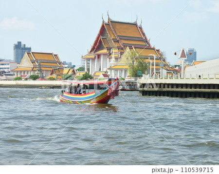 タイのチャオプラヤー川から見るワット・カンラヤーナミット