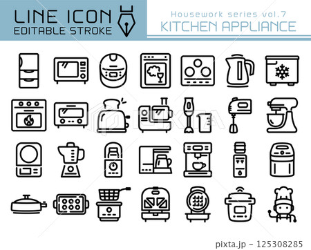 Kitchen Appliances Icon Set. Vector color symbols with editable stroke