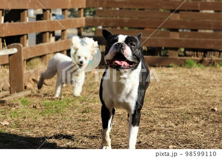 鳩山町愛郷の里のドックランで楽しく遊ぶボストンテリアのマイティ君♡