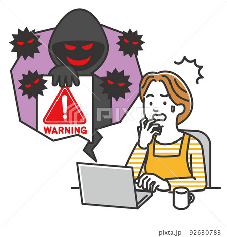パソコンを使った詐欺・犯罪の被害にあった主婦のイラストイメージ