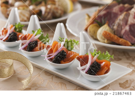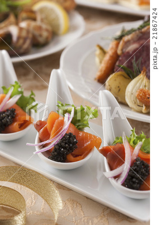 レンゲに盛られたイクラと黒豆 レンゲ 盛り付け