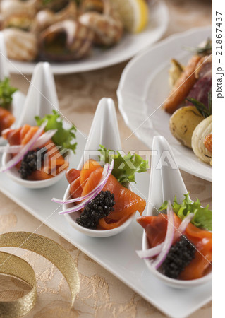 前菜 オードブル ワンスプーン 海老 サラダ 白背景