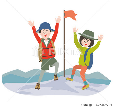 登山で自然を満喫する人々 セットのストックイラスト素材