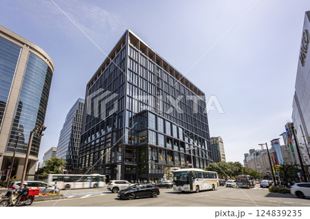 日本の東京都市景観 大手町一丁目の交差点から大手町のオフィス街などを望む=16日