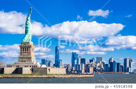 ニューヨーク 自由の女神とマンハッタンの摩天楼