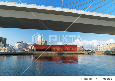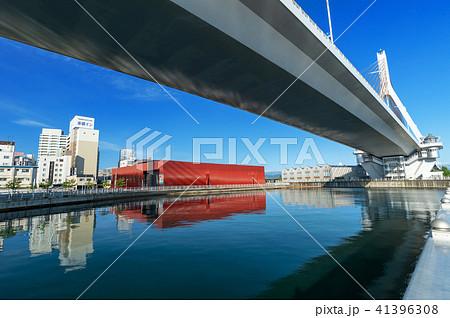 青森の街並み 晴れた日のねぶたの家 ワ・ラッセと青森ベイブリッジ