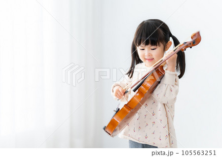ヴァイオリンを持つ5歳の女の子