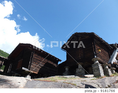 ツェルマット村の風景 マーモット小噴水 スイス ツェルマット