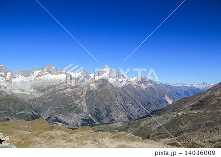 ゴルナーグラードから ゴルナー氷河越しのペンニネアルプスの山々 スイス ツェルマット