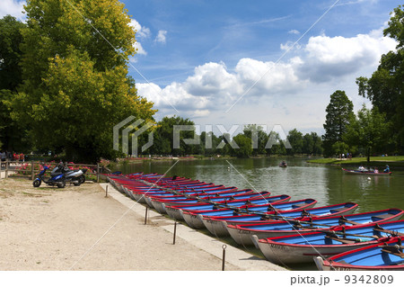 フランス・パリ、ヴァンセンヌの森のドーメニル湖に浮かぶ貸しボート、2021年8月13日撮影。
