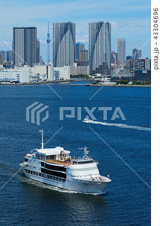 東京湾をクルージング中の大型レストラン船 ヴァンテアンと東京スカイツリー