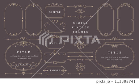 文字なしで使いやすいゴールドのビンテージフレームとオーナメントのセット