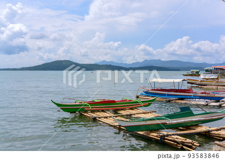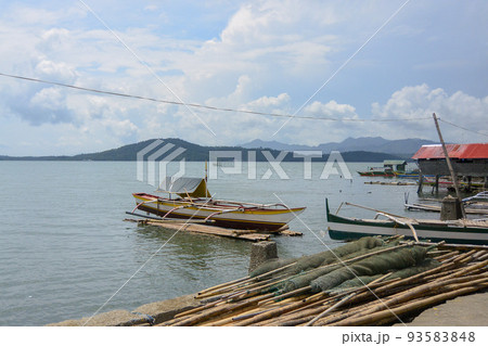 フィリピン、サマール島の港に並ぶバンカのある風景