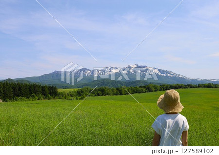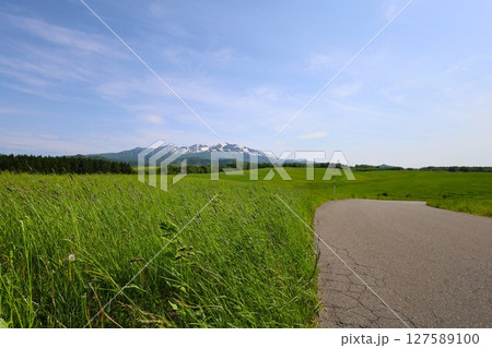 新緑の北海道、大雪山国立公園、大雪山連峰のパノラマを望む大雪高原、旭ケ丘