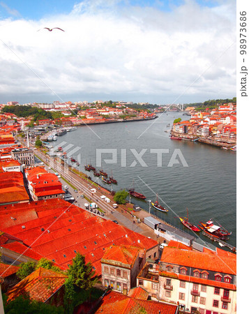 ポルトガル ポルトのドゥエロ川沿いのヴィラ・ノヴァ・デ・ガイアの街並み