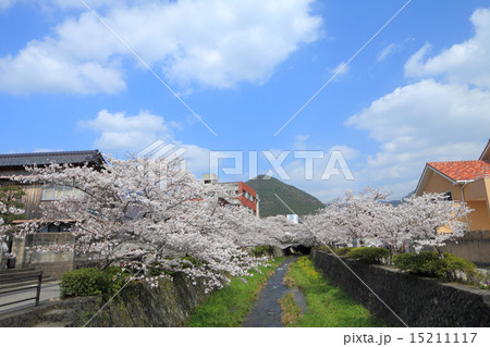 山口市内を流れる桜の名所青空の一の坂川と桜