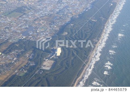 宮崎市上空から見る一ッ葉海岸とゴルフ場