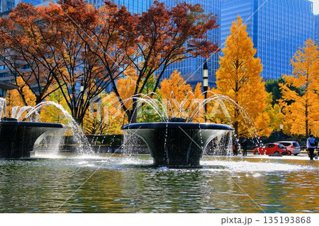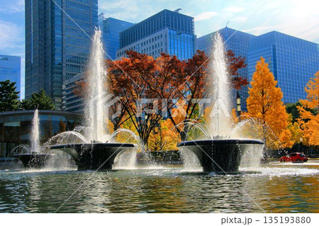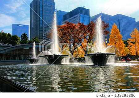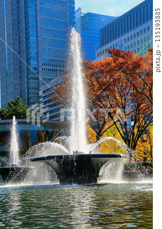 『一丁倫敦』と称された街並みを背に… 陽に輝く噴水【和田倉噴水公園】