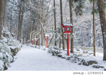 冬の貴船神社 奥宮参道の入り口に架かる橋「思ひ川橋」