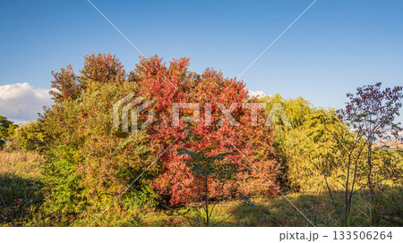 淀川河川公園赤川地区ワンドの樹林 色づく木々 大阪市