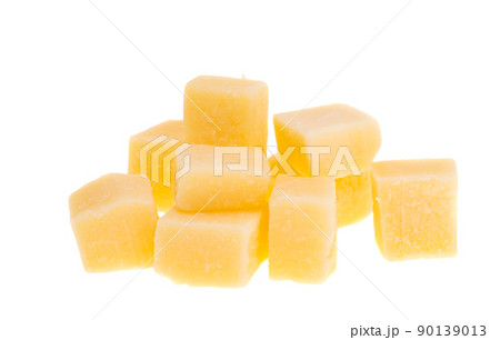 mango yellow Peel square cube piece isolated on white background