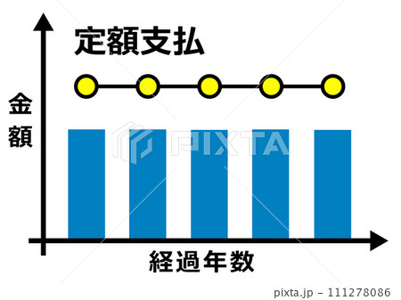 リースやリボ払いを利用し毎月一定額を支払うグラフのイラスト