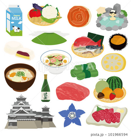 熊本県の名物のイラストセット