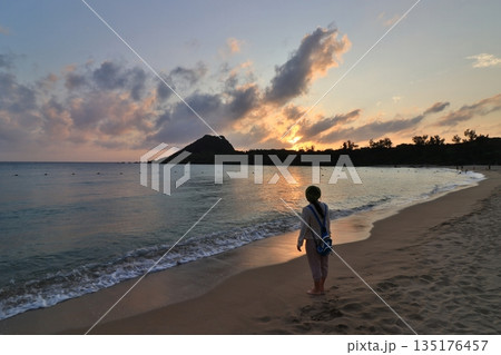 女性在墾丁小灣欣賞夕陽