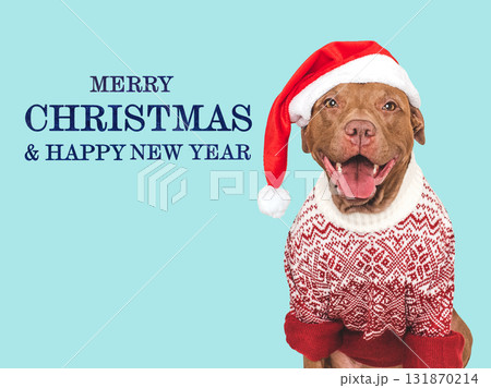 Merry Christmas and Happy New Year. Cute dog