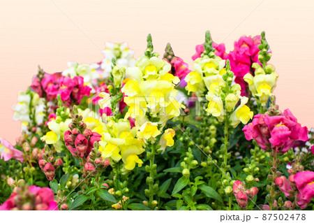 キンギョソウが満開です。色とりどりに鮮やかに咲いています。明るいイメージにどうぞ。