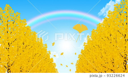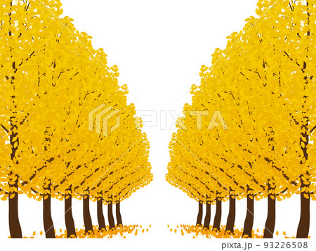 秋の黄葉の銀杏の木が並木道の鮮やかなイラスト