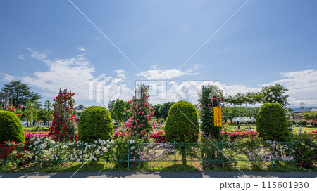 満開の信州の一本木公園のバラ園1