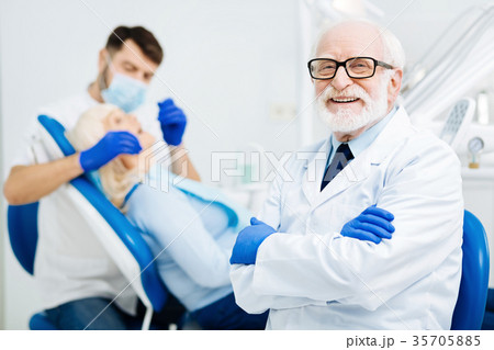 Cheerful glance of pleased stomatologist