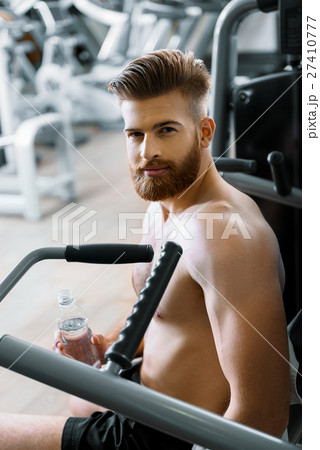 Handsome bearded sportsman in gymnasium