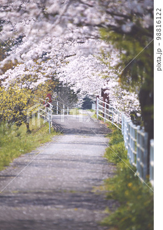 静岡県藤枝市 朝比奈川沿いの遊歩道と桜のトンネル