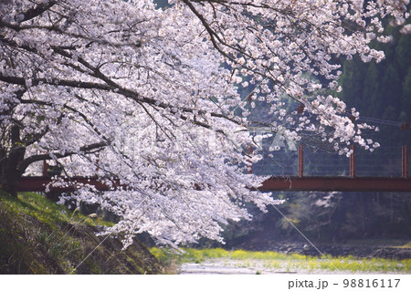静岡県藤枝市 朝比奈川の桜とちゃっきり橋