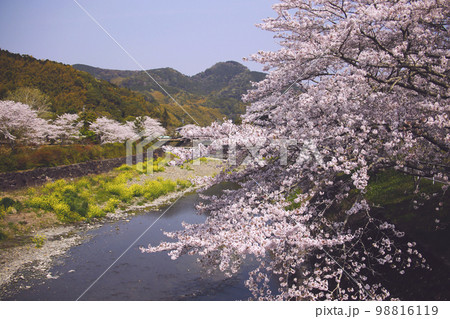 静岡県藤枝市 朝比奈川と土手の桜並木