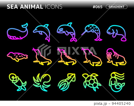 海獣に関連するグラデーションスタイルのアイコンセット_065