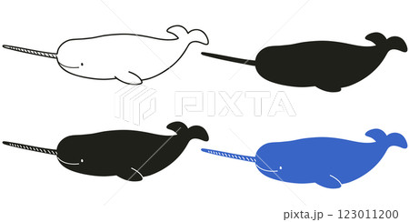 シンプルで可愛いイッカクのイラスト 線画のみ